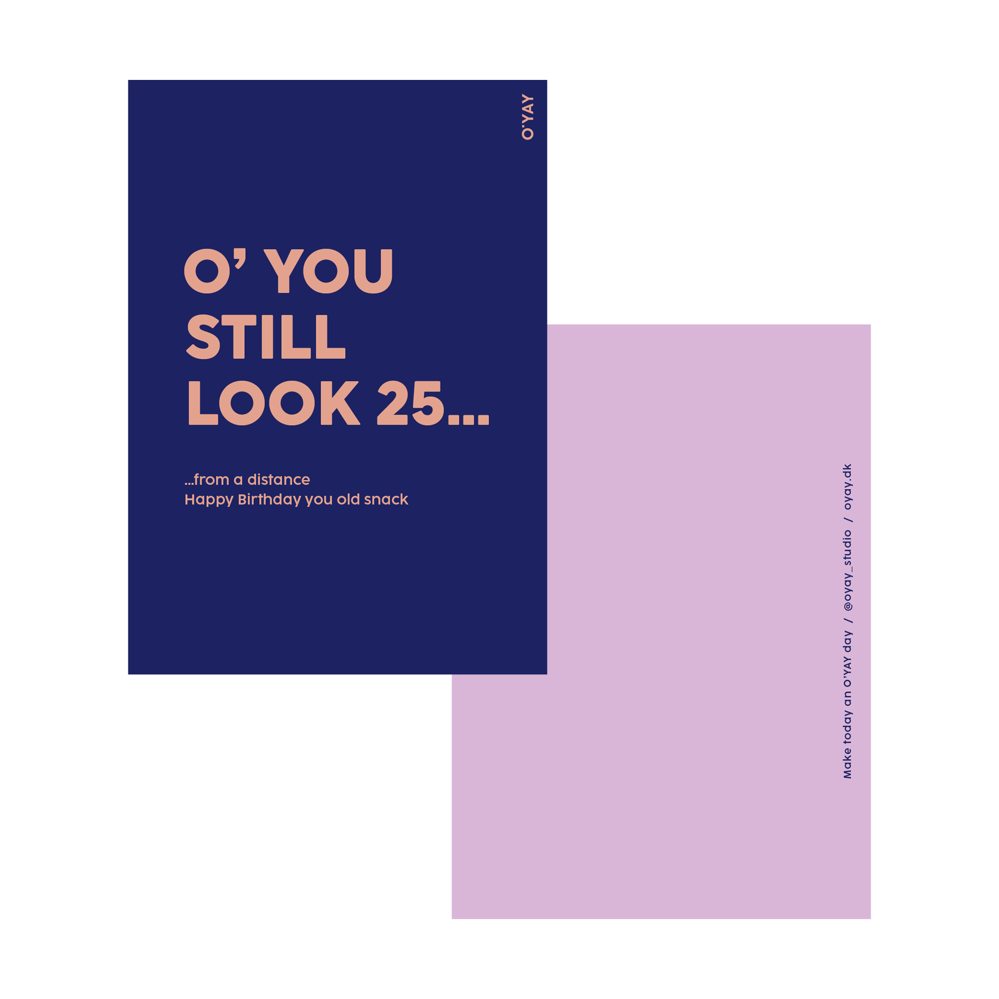 Greet & Keep kort med teksten: “O’ you still look 25…from a distance. Happy Birthday you old snack”